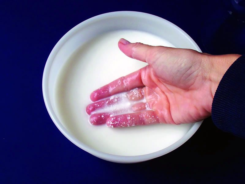 Mit den Händen gut durchrühren und fühlen, ob die Stärke sich ganz aufgelöst hat.