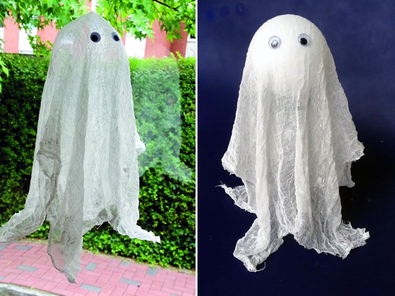 Ihr könnt ihn zur Dekoration aufstellen oder am Kopf einen ausreichend langen Faden befestigen und den Geist daran aufhängen.